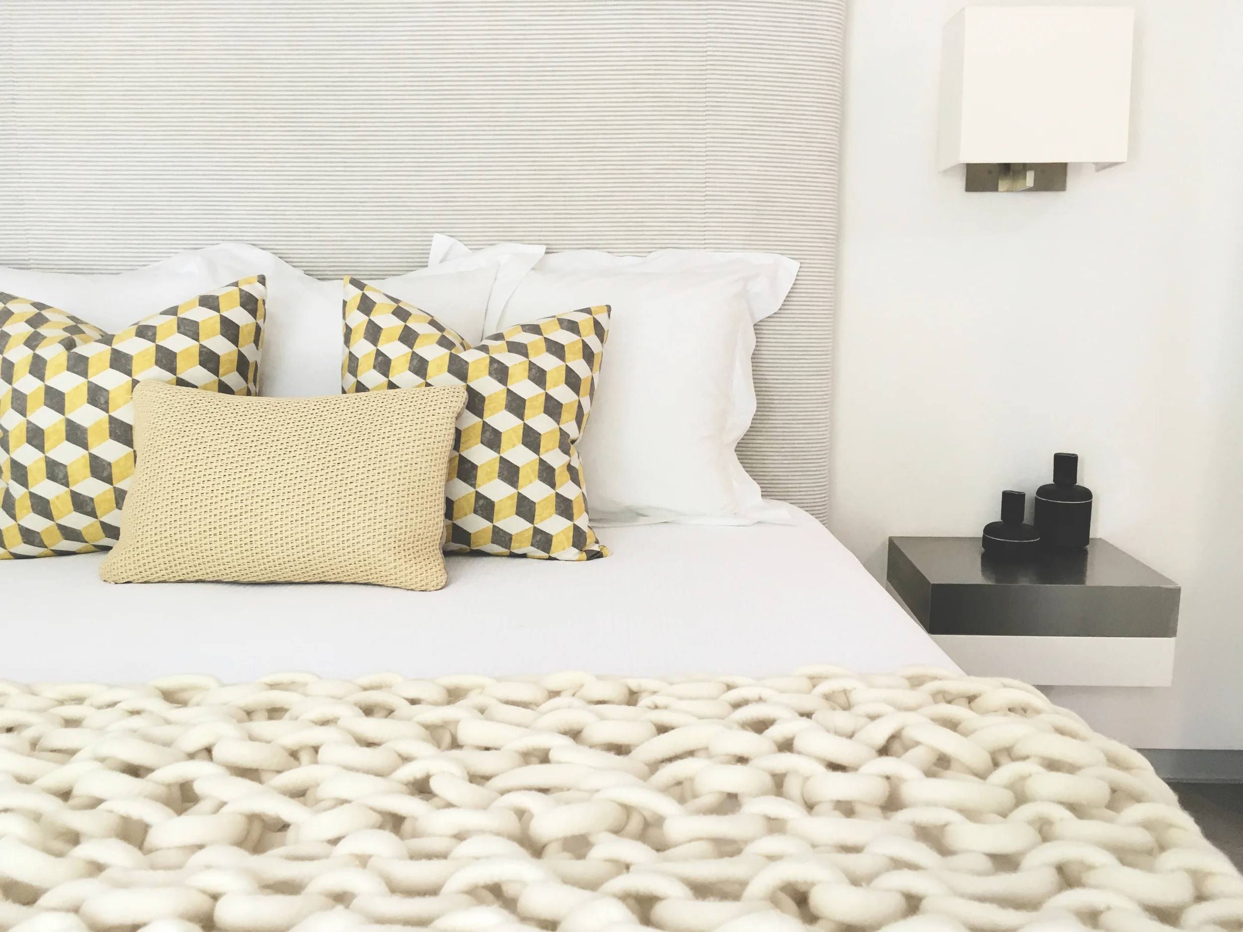 using six foot tall knitting needles, sydney's hooked throws are as comfortable to live with as they are beautiful to look at.